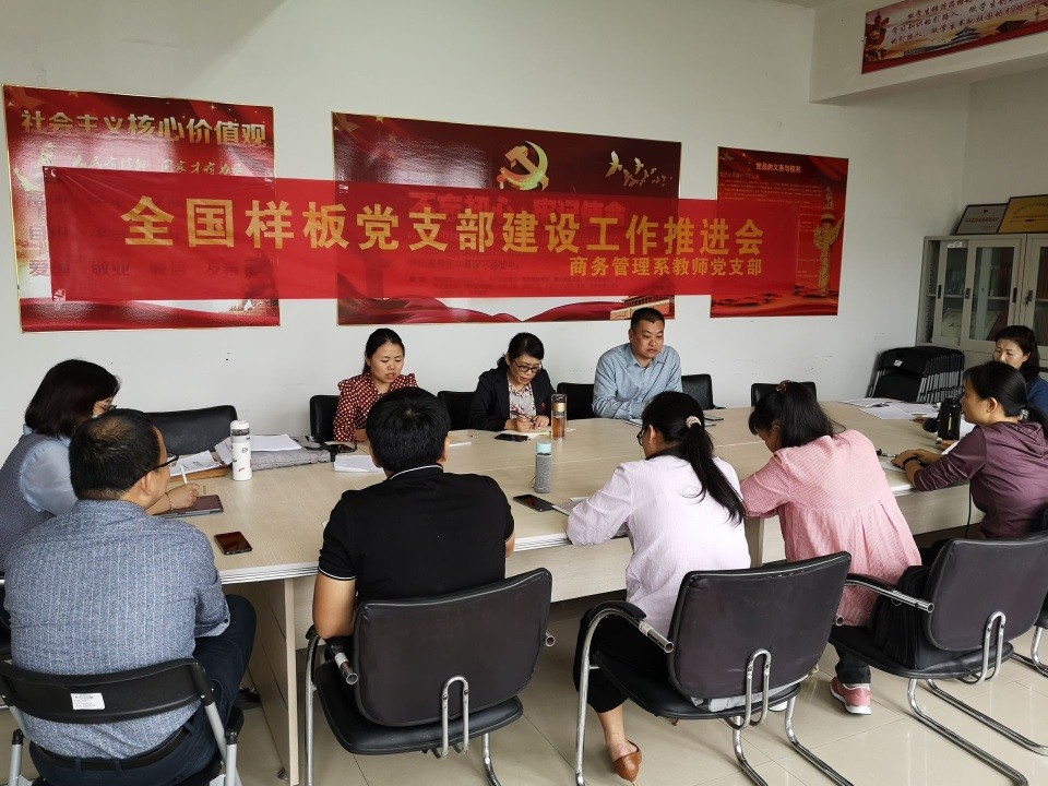 9月29日下午,beat365唯一官网商务管理系教师党支部召开全国样板支部建设工作推进会,学院党委副书记(主持党委工作)廖新平、副院长张美涛、办公室主任王艳、支部全体党员出席了会议。会议由党支部书记龚立恒主持。