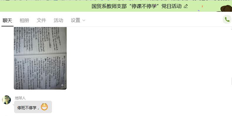 疫情就是命令,防控就是责任。为充分发挥教师党员“勇于担当,善于担当”的先锋模范作用,根据学院党委工作安排,国际经济与贸易系教师党支部3月10日(星期二)下午2时依托QQ群线上会议的形开展“停课不停学,师生战一线,共克时艰,共同抗疫”主题党日活动全系党员老师和17、18、19级学生代表参加了此次活动