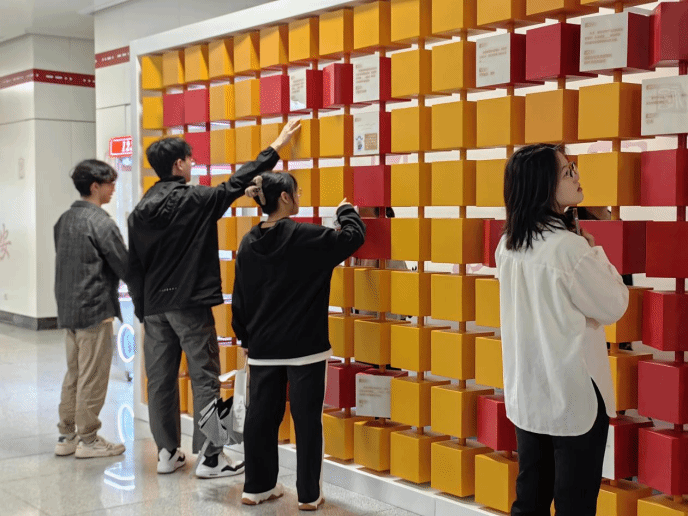 成员们沉浸式体验魔方墙知识问答