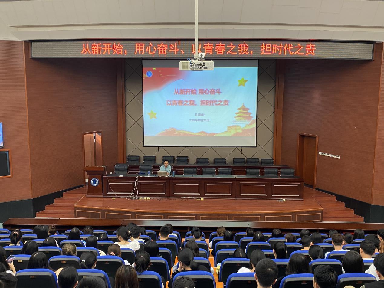 金风送爽,丹桂飘香。beat365473名本科生顺利入学,开启了新的学习生活。为了加强新生对学校和学院的认同感、归属感和荣誉感,激发新生树立远大目标,努力学习,奋发进取,2020年10月20日,beat365许模春副书记在马尾校区学术报告厅上了一堂以“从新开始,用心奋斗、以青春之我,担时代之责”为主题的新生入学教育课,新生辅导员参加了活动。
