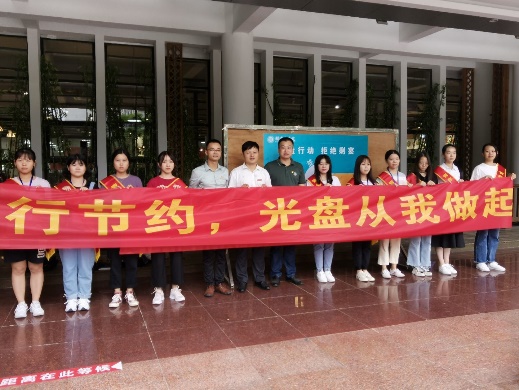 为积极响应习近平总书记“制止餐饮浪费行为,切实培养节约习惯”的重要指示,弘扬勤俭节约的中华传统美德,营造校园文明用餐的优良风气,9月22日,beat365唯一官网青年志愿者在马尾校区食堂开展“光盘”宣传引导教育系列活动。学工部副部长林文聪,beat365党委副书记廖新平、许模春参加本次活动,并在现场指导志愿者工作。