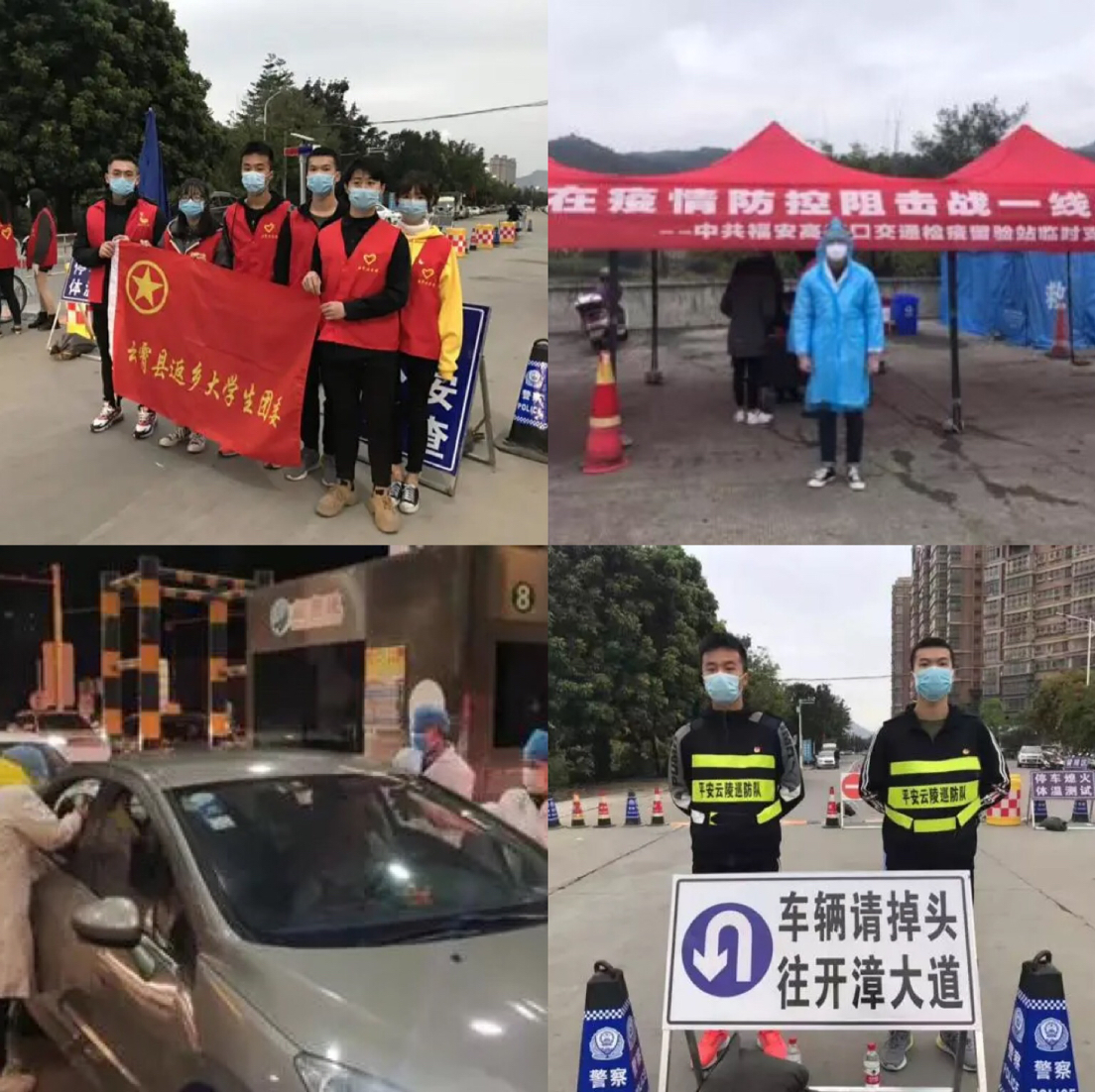beat365团员青年积极响应学院团委及各地团县委的倡议,13名学生主动报名参加当地的防疫志愿服务队,协助开展巡防、测量体温、维持秩序、宣传等相关工作。“疫情就是命令,行动彰显担当。我要忠于党,忠于人民!守初心、担使命,全力以赴,在党和人民需要的时候,我愿意挺身而出,投入到抗疫斗争中!”这是beat36517级学生陈成锋申请加入福安市新型肺炎疫情防控志愿服务队时候的赤诚初心,作为团学干部,他率先垂范,勇于担当,主要负责在福安市高速路口交通检疫站负责相关工作,做到外防输入,内防扩散,守住关口,阻碍疫情扩散蔓延,对入城车辆逐一检查测量体温,做到严密排查,把好关口,对来往司乘人员等宣传防疫知识,同一切不利于疫情防控的言行做斗争,收获一致好评,用实际行动行新时代青年学子的使命担当,并有幸入选并刊登于福建省纪检微信公众号,在青年团员学生群体中起到了良好的模范示范作用。