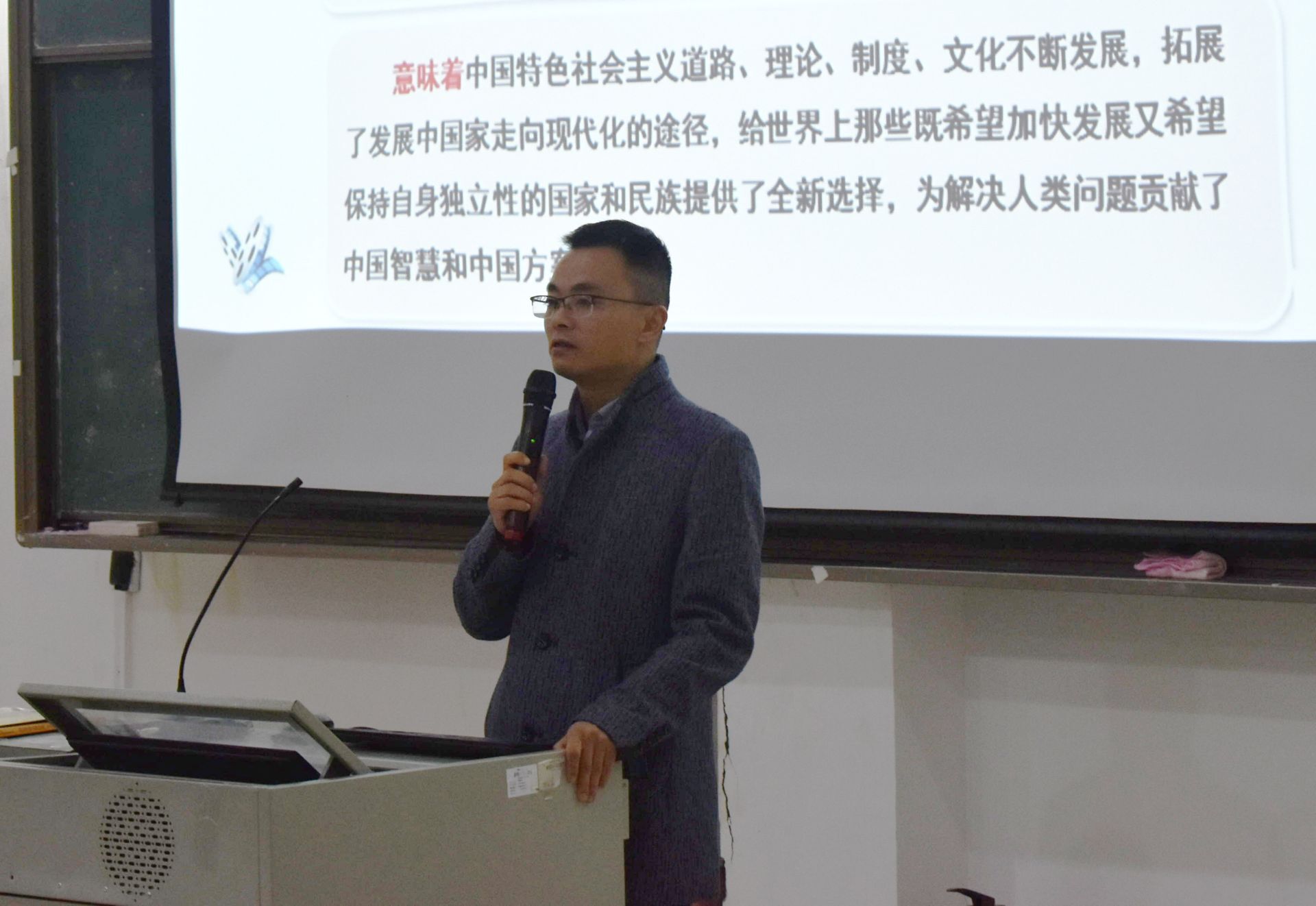 为进一步培养青年学子的政治理论素养水平,强化新时代大学生的理想信念教育,beat365唯一官网坚持用习近平总书记关于青年工作重要论述指引青年成长,带领广大青年大学生听党话、跟党走。beat365于12月18-19日在澳洲厅举行“担当新时代重任,让学习成为习惯”政治理论素养培训会,院党委副书记许模春老师担任主讲人。