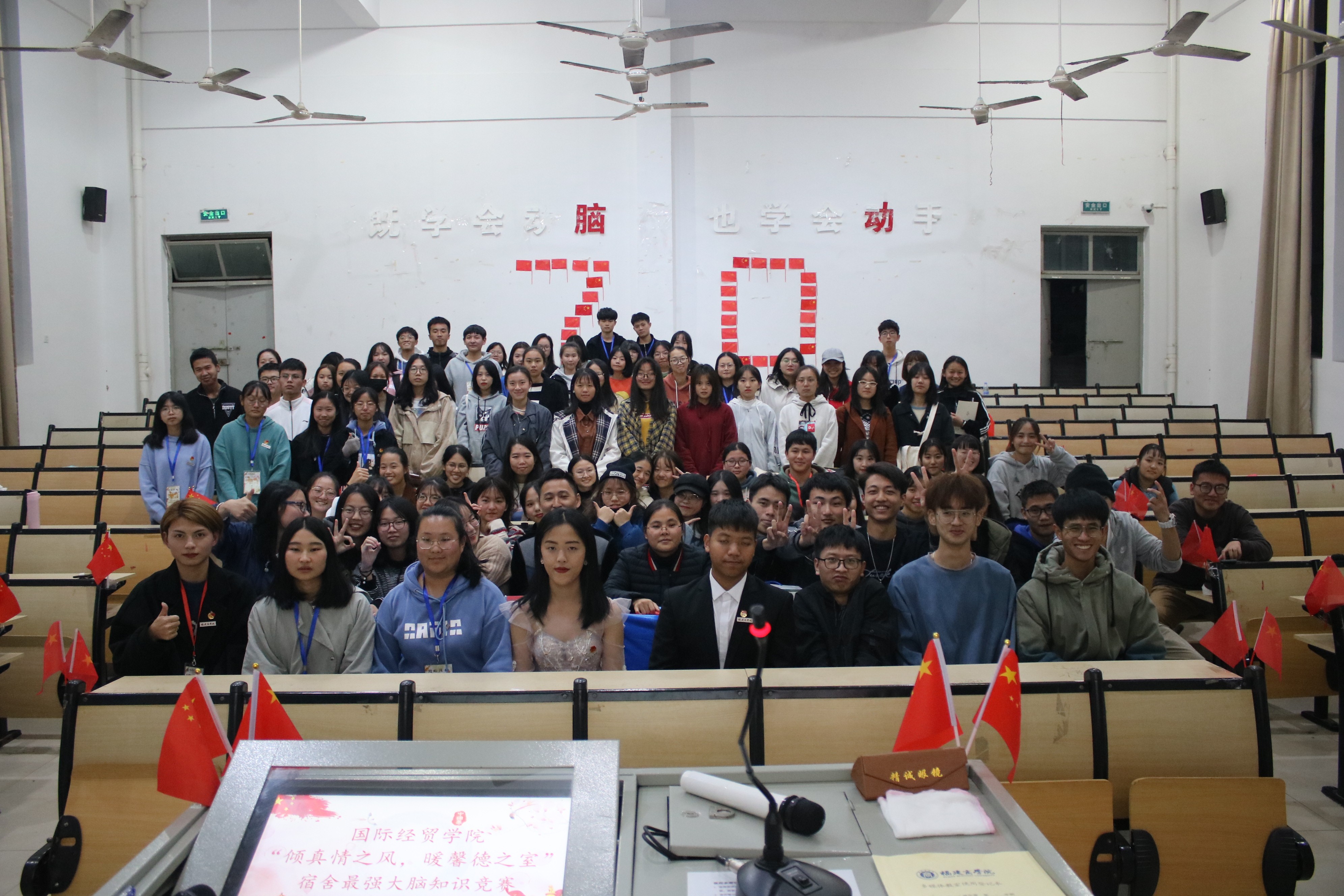 2019年12月2日,beat365唯一官网自律会于马尾校区欧洲厅举办“倾真情之风,暖馨德之室”第二届宿舍文化节系列活动之宿舍最强大脑竞答活动。beat365唯一官网国贸系学生党支部书记吴炎敏、自律会指导老师郑亚梅、参赛宿舍以及各班代表参加了此次活动。