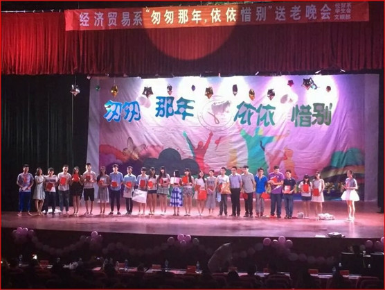 栀子花香,弥漫校园,又逢一年的毕业季,淡淡的花香将所有的思绪勾起。经济贸易系团总支学生会于6月8日晚在活动中心举办以“匆匆那年,依依惜别”为主题的送老晚会。党总支书记徐晓旭老师、团总支书记涂曦老师、经贸系所有辅导员以及15届毕业生参加了本次晚会。