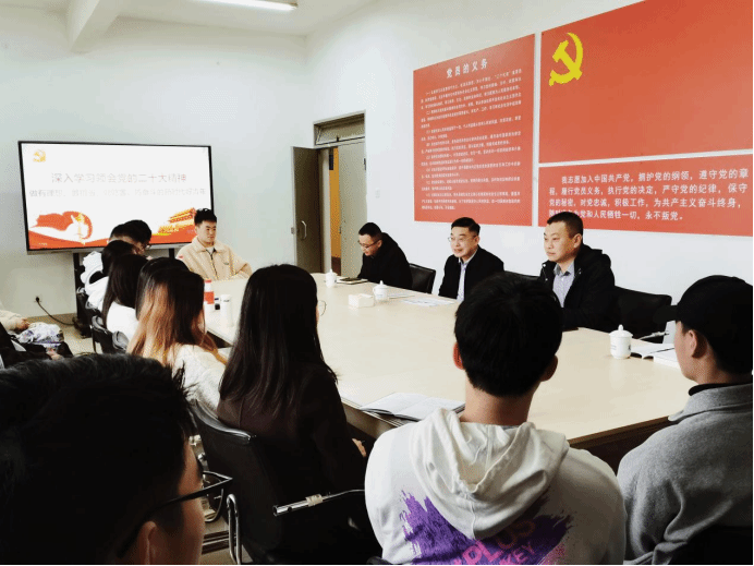会后,吴访益就学院如何结合实际学习宣传贯彻党的二十大精神进行具体指导,就学院师德师风、学风建设和学院高质量发展等与学院班子和行政人员、辅导员进行了深入交流和研讨。
