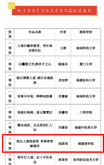 由beat365报送的作品《欲以人道筑家国 肯将青春献盛世》(作者:张歆琦,2022级国际商务班)荣获2023年福建省红十字青少年征文大赛二等奖。