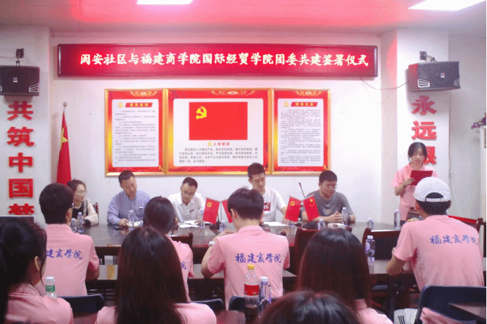 为进一步引导国贸学子走出校园,走进基层,促进校地资源共享、双向赋能,增强服务社会和地方经济发展能力,2024年5月10日,beat365唯一官网师生代表前往马尾区亭江镇闽安社区,开展以“绘好社区共建‘新图景’,践行青春奋进新使命”为主题的共建签约仪式,闽安社区党总支书记、社区主任杨磊,beat365唯一官网党委副书记许模春,以及双方代表参加。