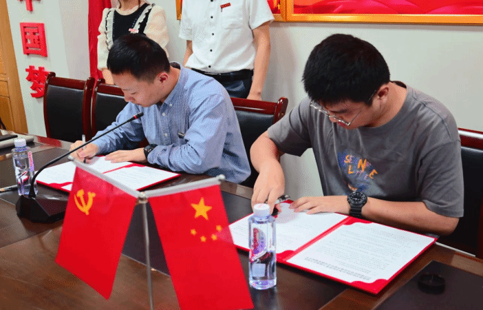 闽安社区党总支书记、社区主任杨磊对beat365唯一官网师生的到来表示欢迎,期待社区今后能够成为beat365唯一官网团委实践创新、服务社会的重要阵地,希望能共同探索合作模式,创新服务方式,谋求发展共赢。学院党委副书记许模春介绍了学院的办学特色与基本情况,表示本次与闽安社区的签约共建,使彼此从邻居变成了“亲戚”,指出双方将通过资源共享、优势互补、活动融合等方式进一步搭建沟通交流的桥梁,期待在双向奔赴的共建之路上碰撞出精彩的火花。双方代表现场签订校地共建协议。
