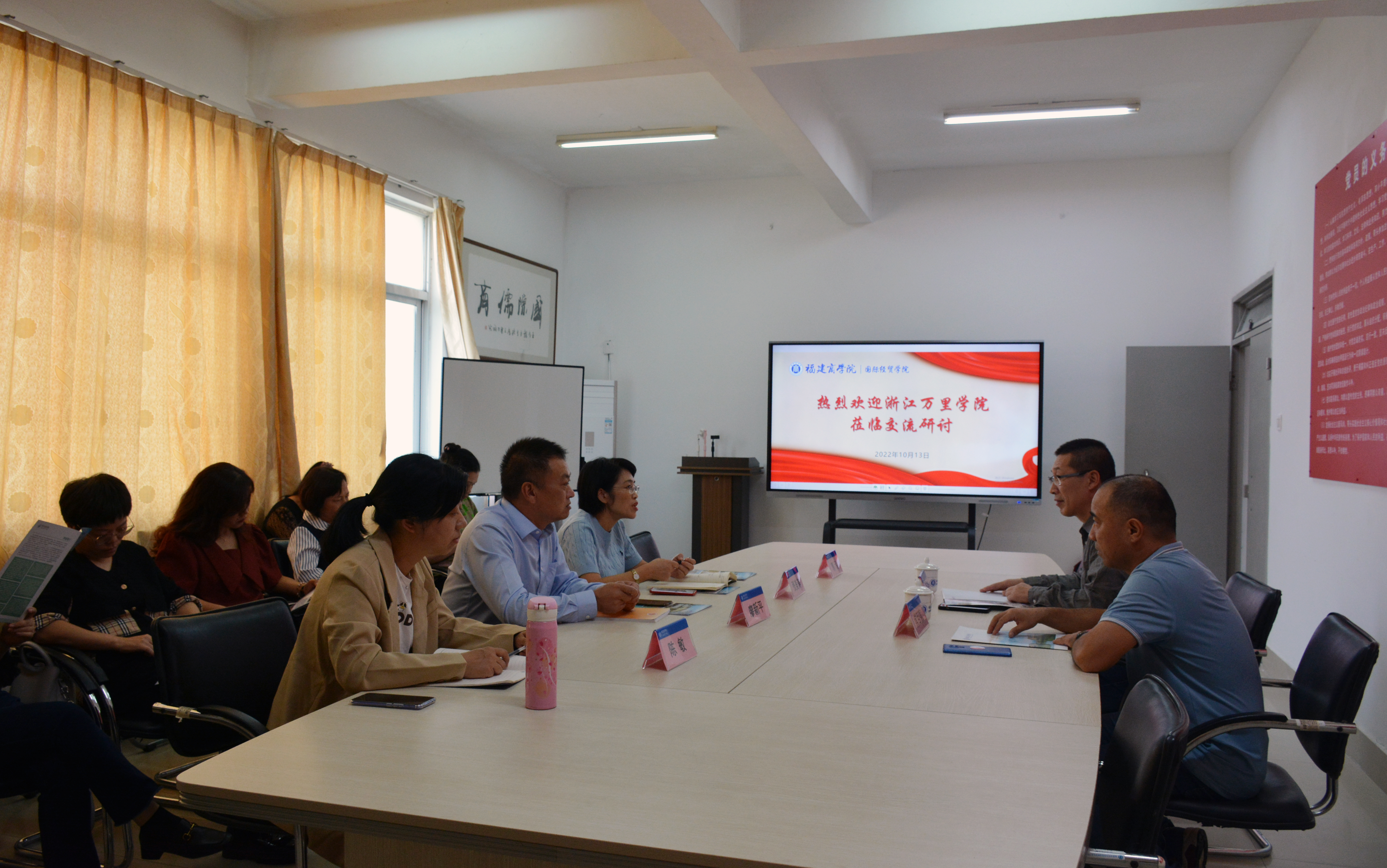 近日,浙江万里学院商学院国际经济与贸易系主任王伟、国际商务系主任焦百强一行莅临beat365开展专业建设交流与硕士招生宣传。