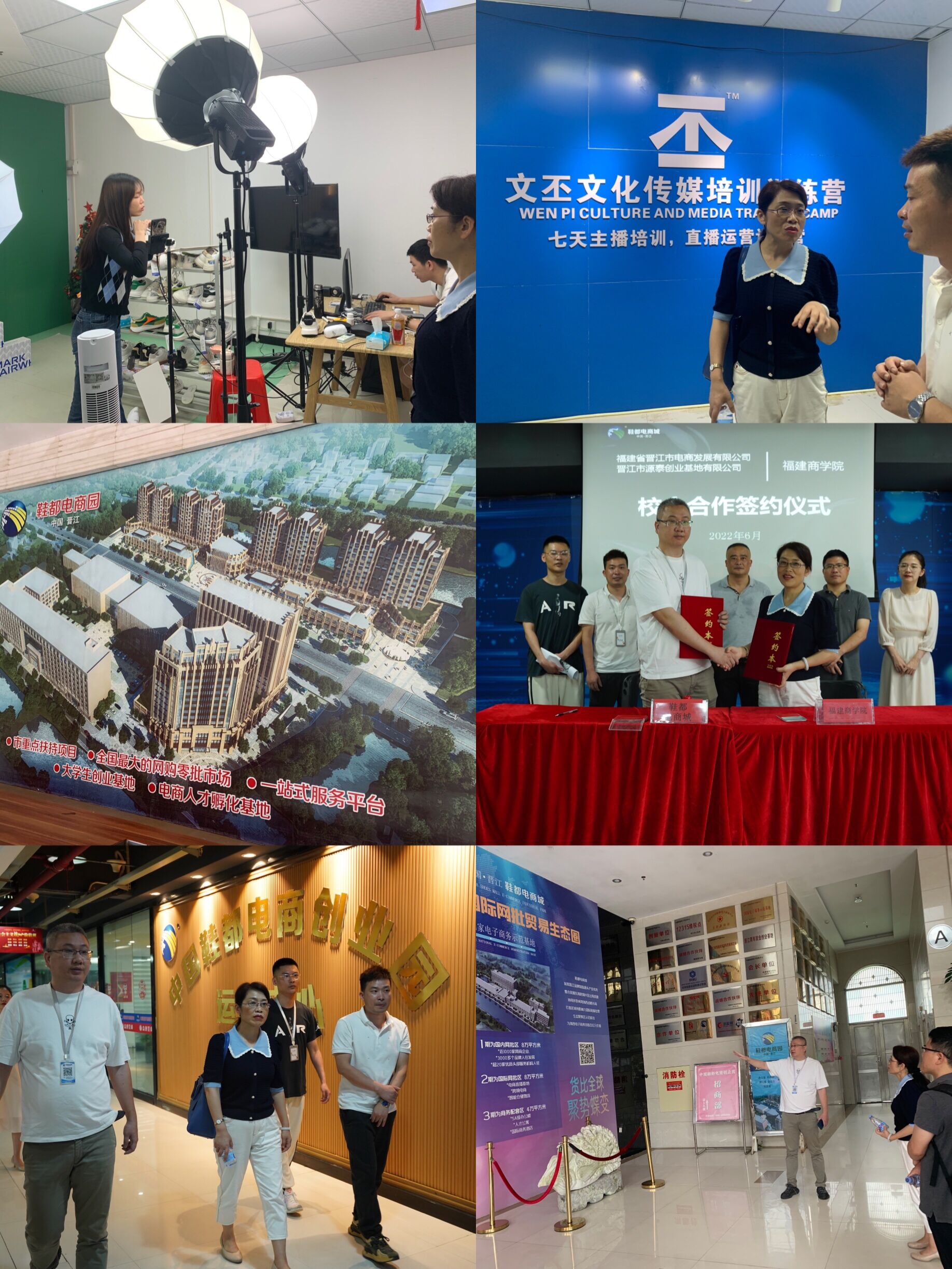 调研中,一行人参观了电商城运营中心展厅,详细了解晋江鞋都电商城的基本情况。院领导向企业代表介绍了学校的基本情况、学科特色和人才培养方案。鞋都电商城总经理陈建恩对学校人才培养成果给予了高度的评价,表示期待与beat365携手共同培养一批高素质高技术的电商实战人才,服务地方经济发展。园区企业代表文丕文化传媒有限公司总经理黄斌希望通过校企合作实现资源共享、优势互补。校企双方签署《福建商学院学生校外实践教学基地协议书》,双方以培养学生实践能力为目的,建立稳定、长期、全面的合作关系。