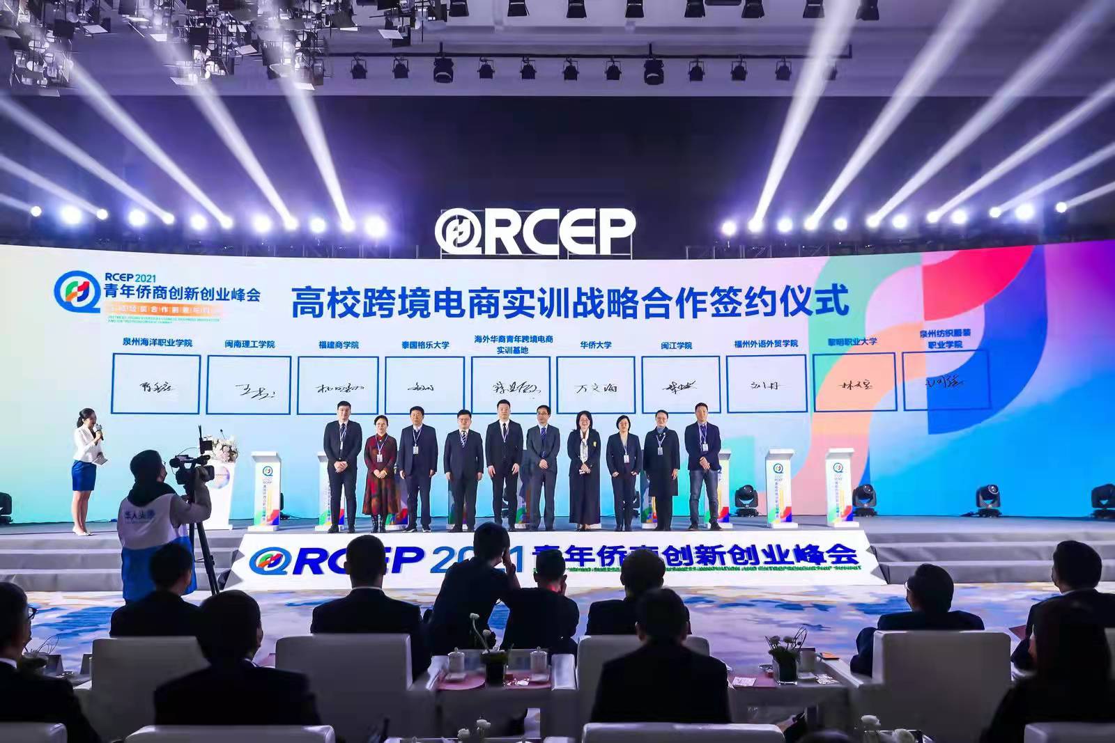 石狮东南亚采购集散中心作为此次峰会重要的落地基地,主要从事跨境电商或来闽投资创新创业,目前已入驻300余家企业,进驻14个产业馆,预计实现年出口额超300亿元;实现布局6个国家11个海外仓,面积12万平方米,投资额2.1亿元。为了鼓励更多海内外青年到东南亚集散中心创新创业,打通国内外跨境贸易的通道,让企业感受到“在工厂里做电商”的体验,解决电商人才需求缺口的问题,大会特邀请了开设有跨境电商、电子商务和国际商务专业的应用型本科高校到会签约,我校副校长杨晓翔教授代表学校参加了“高校跨境电商实训战略合作签约仪式”。同时受邀的还有华侨大学、闽江学院、泰国格乐大学等高校,此次签约为进一步扩大我校电子商务、跨境电商、国际商务等专业在业界的影响力,发挥了积极的宣传作用。同时还将为我校未来在校企合作办学、为基地提供培训服务,以及学生创新创业方面提供更多的机遇。