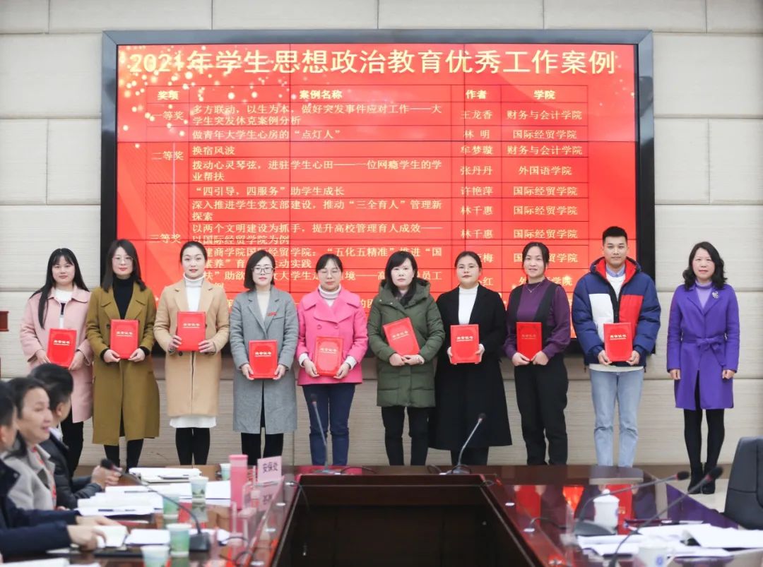 2月24日上午,我校在连江校区召开宣传思想政治工作会议。校长程灵宣读了2021年学生工作先进集体、2021年优秀辅导员、2021年学生思想政治教育优秀工作案例获奖名单。