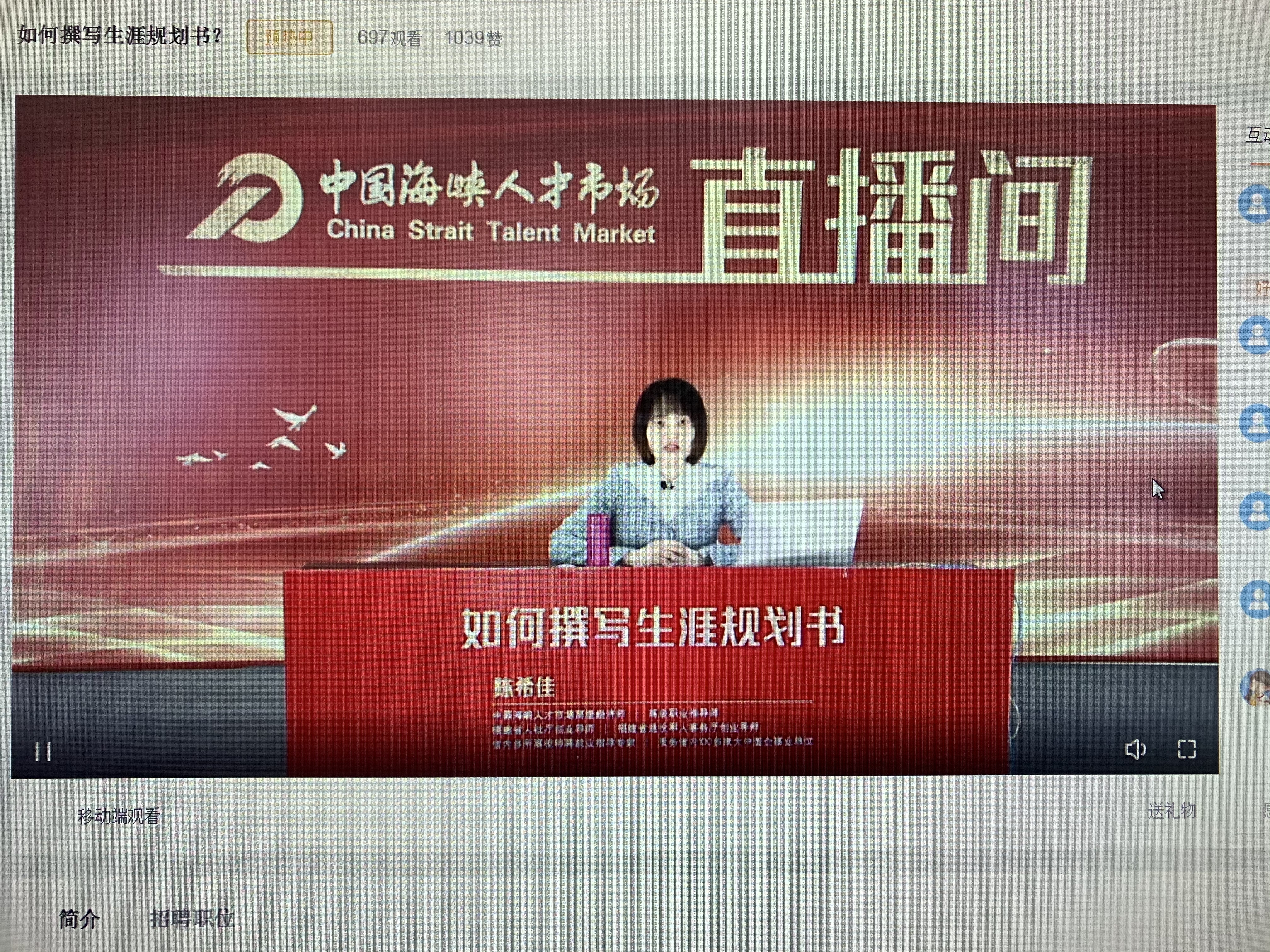 2022年4月2日,beat365唯一官网邀请中国海峡人才市场高级经济师陈希佳为beat365学生开展“如何撰写职业生涯规划书”主题线上直播讲座,学院共有1500余名师生参与了此次讲座。