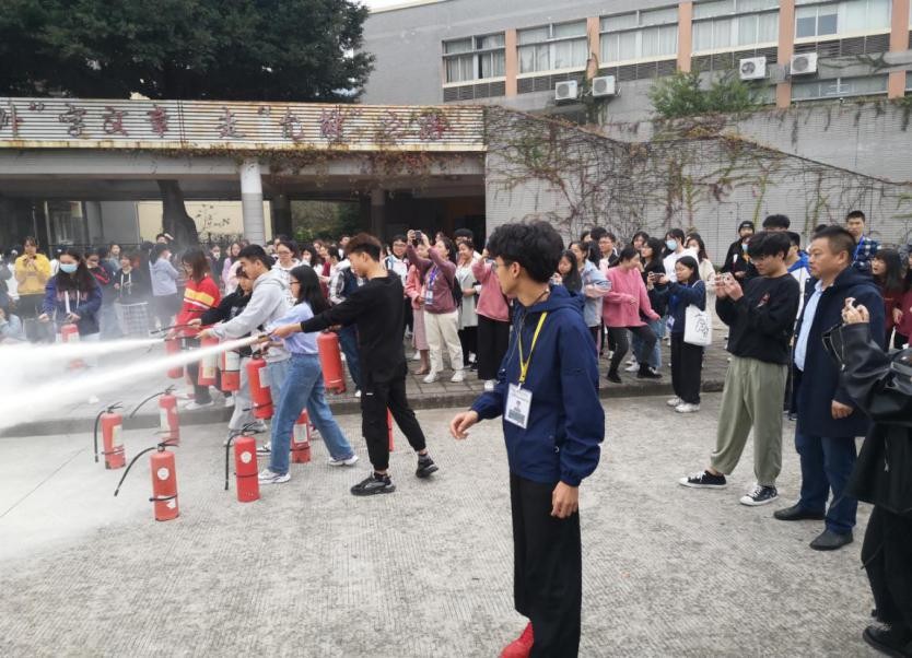 随后,周建成老师指导师生进行使用灭火器演习,包括如何正确使用灭火器,如何快速、正确的灭火。大家踊跃参与,分组熟悉并掌握了灭火器的正确使用方法。