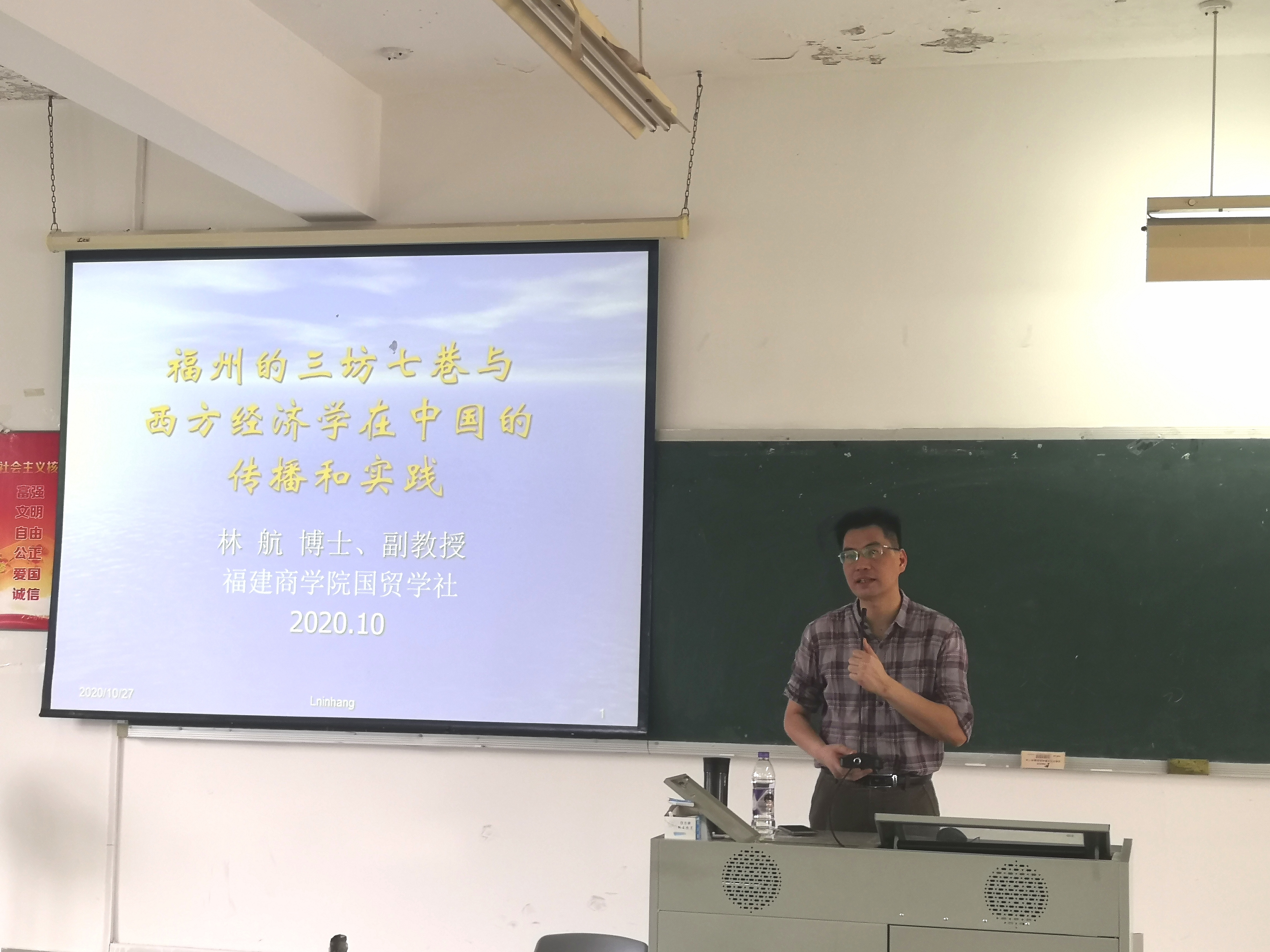 10月27日下午,由beat365唯一官网国贸学社举办的“beat365唯一官网博士教师系列讲座”之首期讲座—“福州的三坊七巷与西方经济学在中国的传播与实践”在远志楼T3开展。beat365博士林航副教授为主讲人,国贸学生全体社员、相关师生参加讲座。