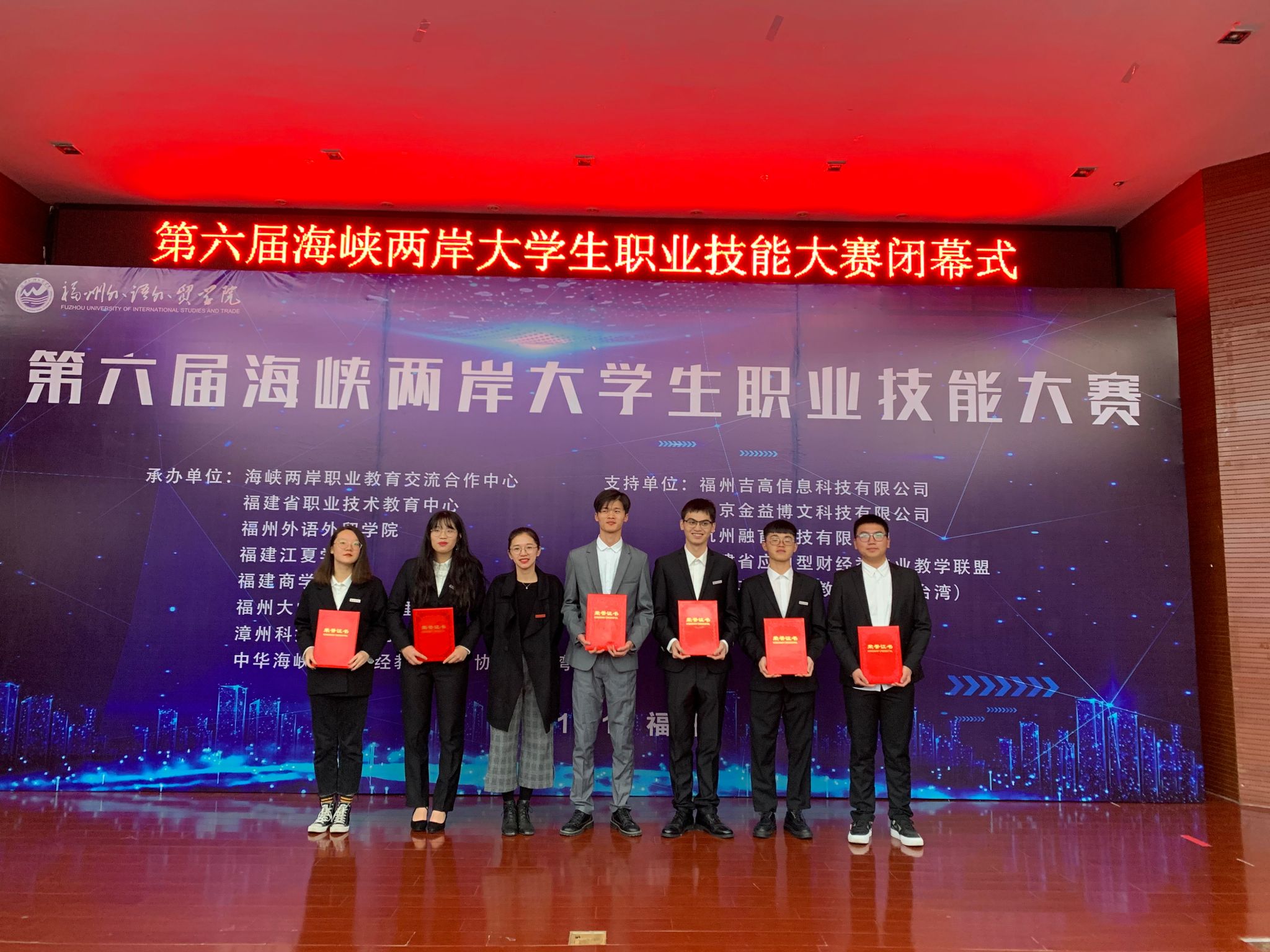2019年12月29日,由福建省教育厅和教育部高等学校经济与贸易类专业教学指导委员会主办的第六届海峡两岸大学生职业技能大赛在福州外语外贸学院举行。江西财经大学、福建师范大学、新疆财经大学、烟台大学等大陆6个省市40余所高校及台湾中原大学等3所台湾高校代表队参赛。我校beat365唯一官网林丹晨、黄智杰、刘康、陈燕平、彭霆峰、孟令鑫六名同学组成的代表队(指导老师:林超、江剑敏)在全国高校第三届两岸大学生国际贸易经营实战沙盘竞赛本科组中获得团体三等奖、国外公司二等奖和国内公司三等奖。