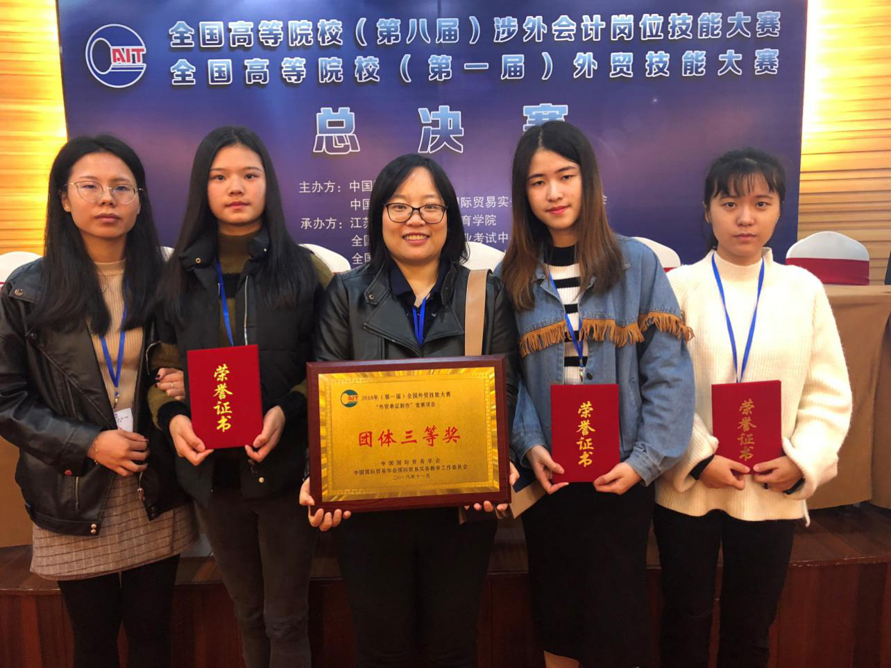 为了大力推进本校高素质技能型人才的培养,提高外贸单证制作水平,检验教学效果,培养大学生的动手实践能力,提升我校学生的综合素质,国际经济与贸易系在院领导和系领导的大力支持下,委派曾靓老师为指导老师,选拔了2016级国际经济与贸易专业四名学生参与了大赛,最终获得个人二等奖一个(刘倩颖)、个人三等奖一个(何倩)以及团体三等奖(刘倩颖、何倩、董露、杨小芳)的成绩。本次大赛,展现了beat365国际贸易单证实务的教学水平,也为未来专业改革和实践教学提供新的方向。 团体三等奖 刘倩颖个人二等奖 何倩个人三等奖 全体参赛选手