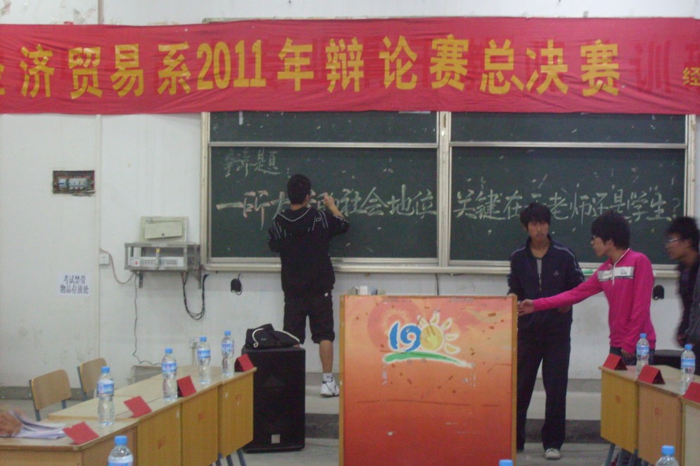 2011年3月31日晚,由福建商业高等专科学校经济贸易系举办的系辩论赛总决赛在山上教室二隆重举行,系党总支书记林万顺老师、团总支书记陈煌勇老师出席了此次比赛,系学生会主席王雪凝等担任此次辩论赛的评委。