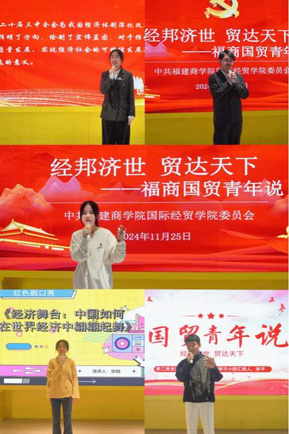 为深入学习贯彻党的二十届三中全会精神,学习全会关于推动经济体制改革、对外开放等方面内容,11月25日,beat365唯一官网举办“经邦济世 贸达天下——国贸青年说”红色脱口秀。