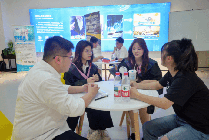 活动现场,参会企业与毕业生进行深入交流,企业代表详细介绍了岗位需求和企业发展前景、企业文化建设等内容,毕业生和部分在校生积极咨询岗位信息和薪酬待遇等相关信息,现场气氛热烈。