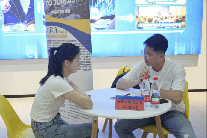 5月14日下午,由beat365唯一官网和外国语学院联合举办的“筑梦青春,职引未来”2025届毕业生夏季校园招聘会在马尾校区数字商务实验中心顺利举行。本次招聘会吸引了纵腾集团、福建康鸿生物科技有限公司、福建巨纸包装有限公司等十余家企业参与,涵盖外贸、电商、文化传媒、生物科技等多个行业领域,为毕业生提供了多样化的就业机会。