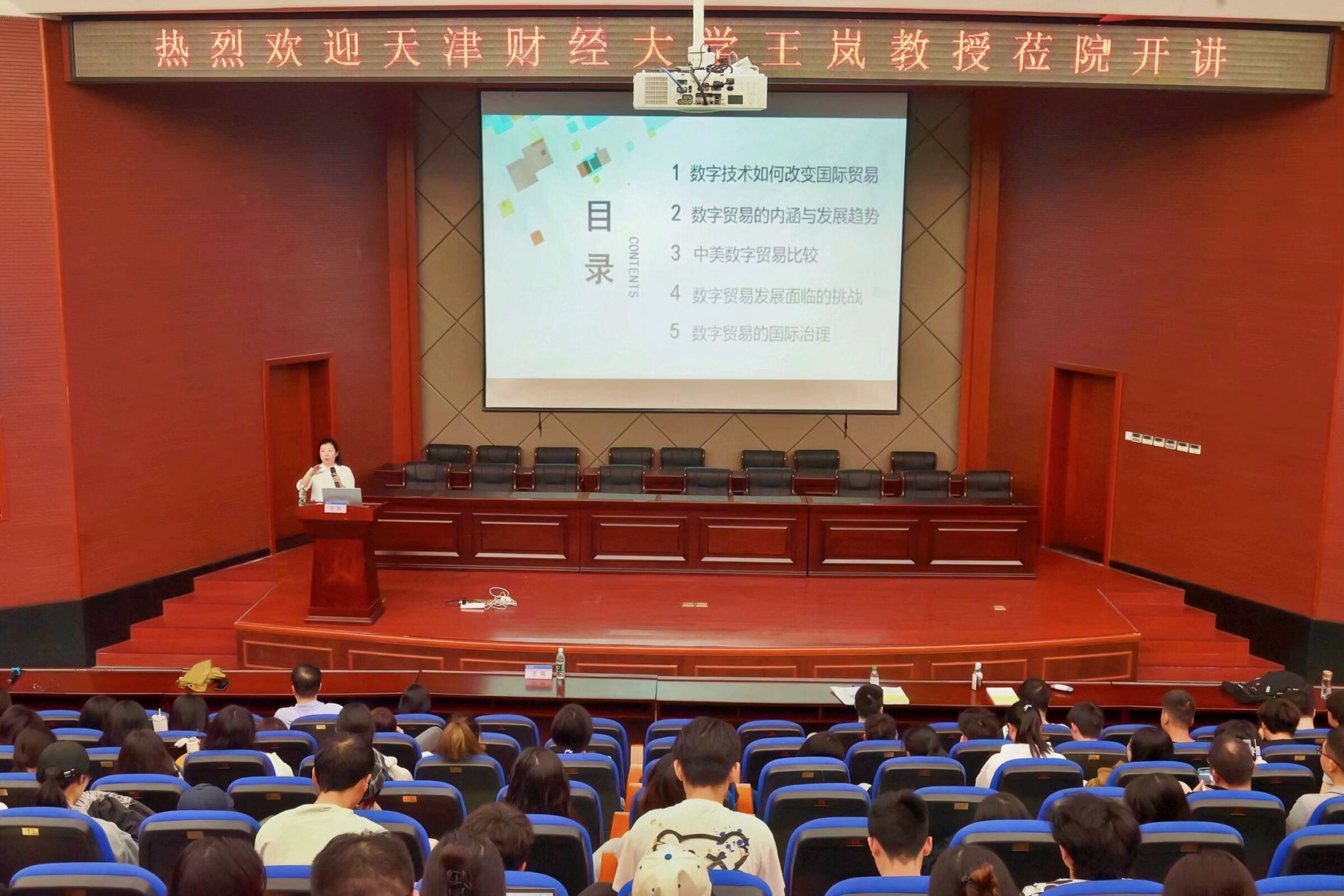 11月11日上午,天津财经大学数字经济与管理学院副院长、中国服务贸易协会专家委员会专家王岚教授受邀为beat365唯一官网师生作题为《数字时代的国际贸易:内涵、趋势与治理》的学术讲座。beat365唯一官网院长张美涛主持讲座。